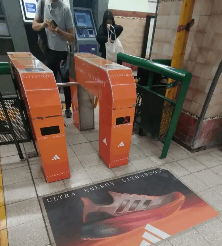 El colmo se vio meses atrás, cuando SBASE permitió la instalación de una publicidad de una conocida marca de gaseosas en andenes y escaleras de la combinación de la Línea D (verde) y la línea H (amarilla). Ese camino verde resultaba ser una “experiencia inmersiva” de la marca y no el camino a la combinación con la línea D. En casos como estos, la invasión publicitaria atenta directamente contra la usabilidad.
