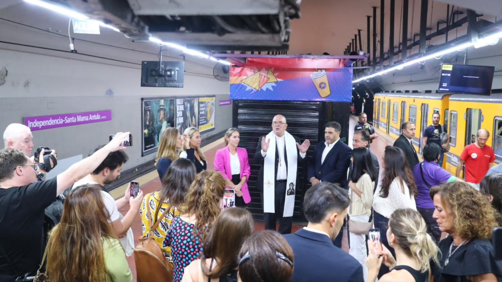 La escena era bastante peculiar. Obispos, capellanes y funcionarios, entre los cuales estaba la directora general de Cultos, se pararon frente a un kiosco cerrado en el andén de la estación Independencia de la línea E del subte, donde la frecuencia entre servicios orilla los 6 minutos. Frente a asesores, periodistas e influencers, encabezaron el “renombramiento” (sic) de la estación “Independencia – Santa Mama Antula” en homenaje a la primera santa argentina.