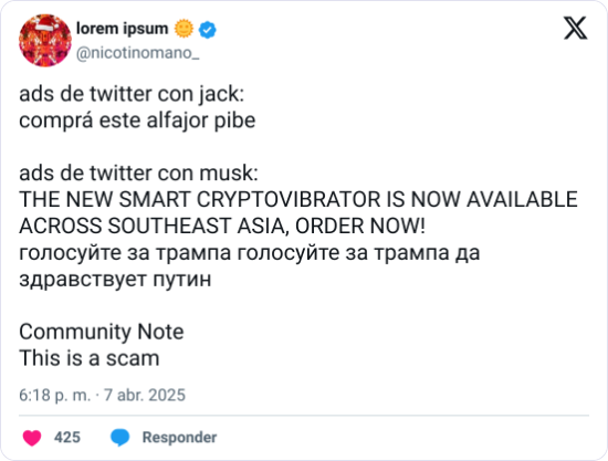 La lingüista francesa Catherine Kerbrat-Orecchioni alguna vez dijo que «la naturaleza del canal no carece de incidencia sobre las elecciones lingüísticas», lo que según la traducción española de José Medina Echavarría quiere decir: «desde que lo regentea Elon Musk esta red es una jarra loca de bait, brainrot y desinformación».