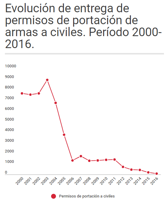 “Somos muy restrictivos”, dijo a Chequeado Natalia Gambaro, directora ejecutiva de la ANMaC desde que Mauricio Macri llegó a la Presidencia. “En 2016 se emitieron 73 permisos de portación de armas de fuego que tienen un año de vigencia, es decir, una vez finalizado, si quien solicita la portación quiere renovar la autorización debe presentar nuevamente ante la Comisión de portaciones los motivos que justifican que tenga la habilitación para portar un arma”. En años anteriores, según cifras oficiales de la ANMaC, se habían emitido cifras mucho mayores.